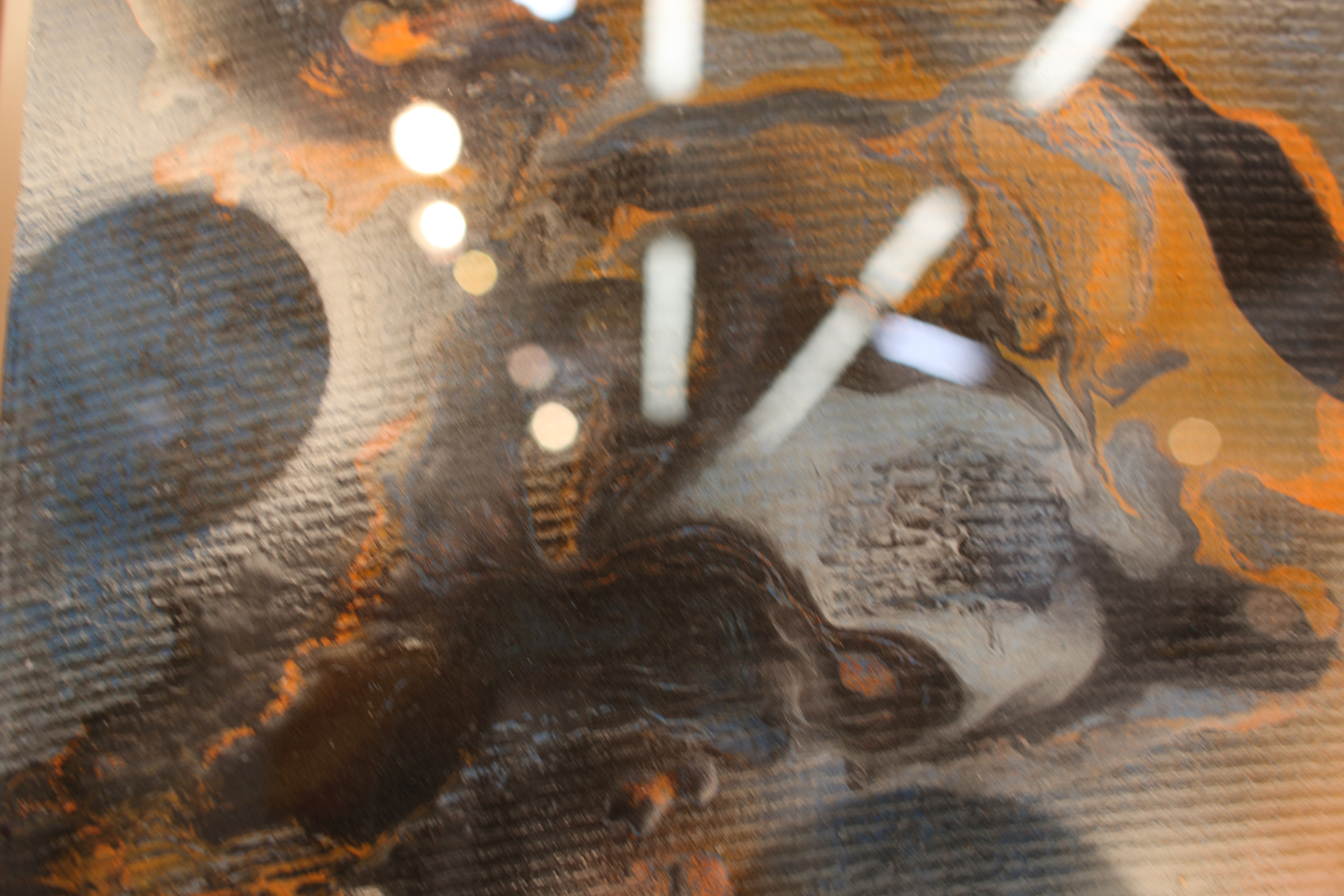 Gesso, oil, acrylic and spray paint, epoxy resin coat on wood panel