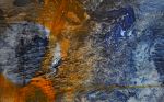Gesso, acrylic, spray paint, chalk on 3/8″ plywood.